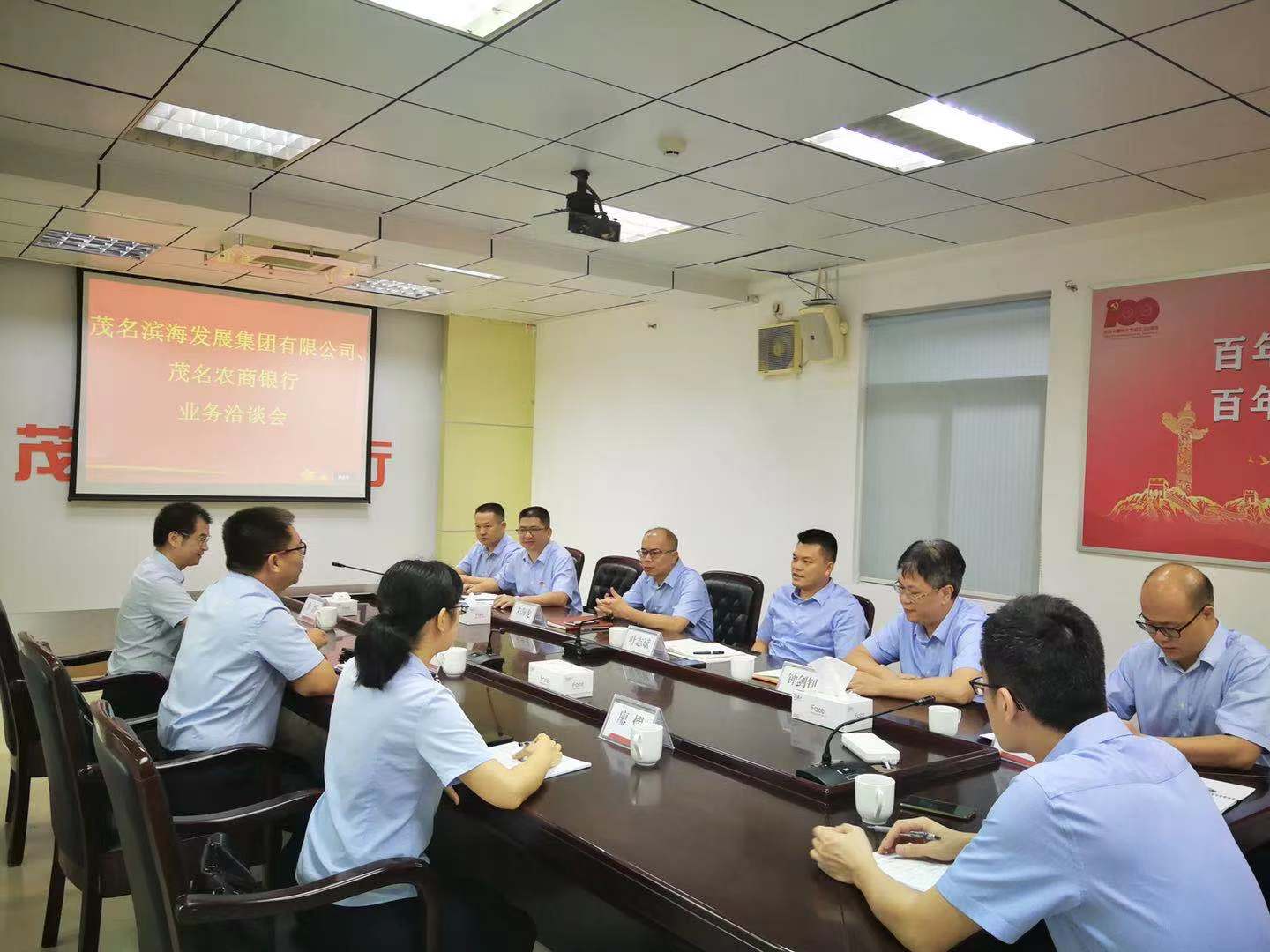 7月19日上午,茂名濱海發(fā)展集團(tuán)黨委書(shū)記、董事長(zhǎng)黃遠(yuǎn)維帶隊(duì)拜訪茂名農(nóng)商銀行,雙方就項(xiàng)目融資、產(chǎn)業(yè)合作等有關(guān)事宜進(jìn)行洽談,并達(dá)成合作意向。茂名農(nóng)商銀行行長(zhǎng)葉志斌,副行長(zhǎng)鐘劍釗、朱海龍;茂名濱海發(fā)展集團(tuán)黨委委員、副總裁李滔等參加座談會(huì)。