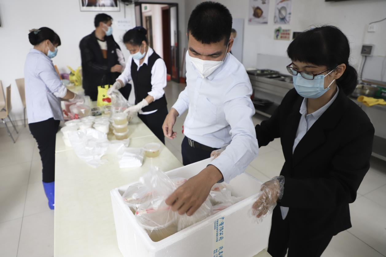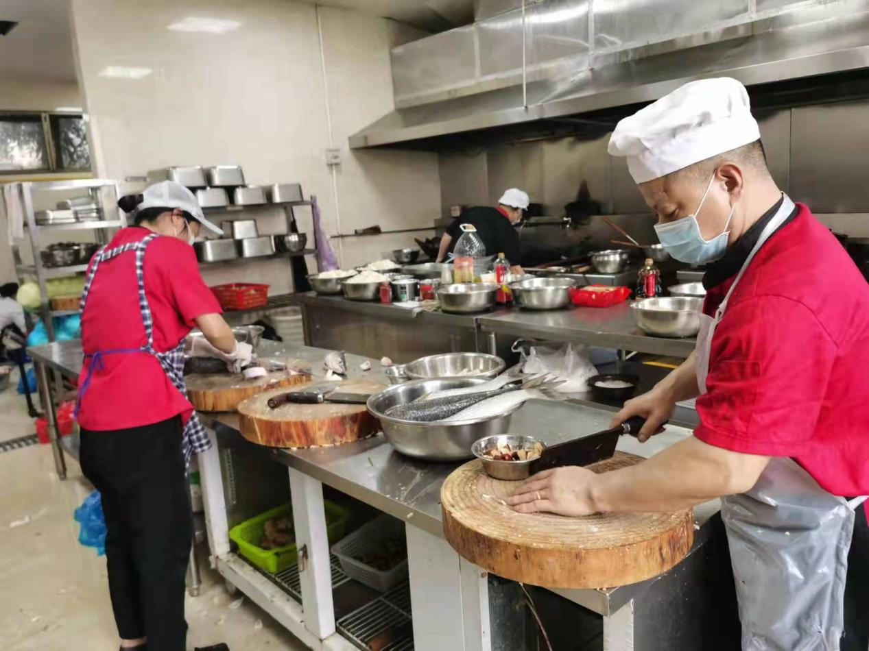 在“三天兩檢”的高強度核酸檢測工作進行過程中,集團下屬綜合服務公司為確保盡最大努力做好醫患人員、志愿服務人員、值守民警的一日三餐供應工作,迅速征調物業管理人員、飯堂后廚人員立即到崗,按照分工,分頭行動,全力投入到緊張的工作之中。3小時內,30余名員工齊聚后勤飯堂,在大家的努力下,餐食供應和配送隨即進入正軌。接著便是對全部人員進行防疫時期上崗的應急培訓,明確各自防護要意、返回崗位的要求和任務。
