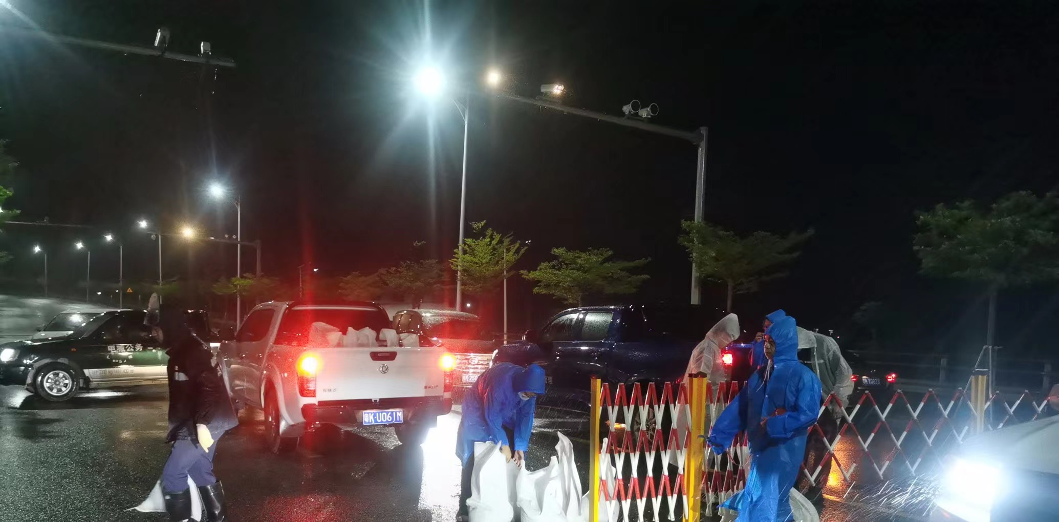 8月25日凌晨,在新區上級領導部門的指導部署下,道路養護中心各小組連夜分赴博賀灣大橋、清福港大橋、西葛驛站、濱海旅游公路沿途村莊路口等風險點進行封閉。同時,組織人員對各大排水口、下水道、放水涵閘進行提前清淤疏通,及時消除積水隱患。