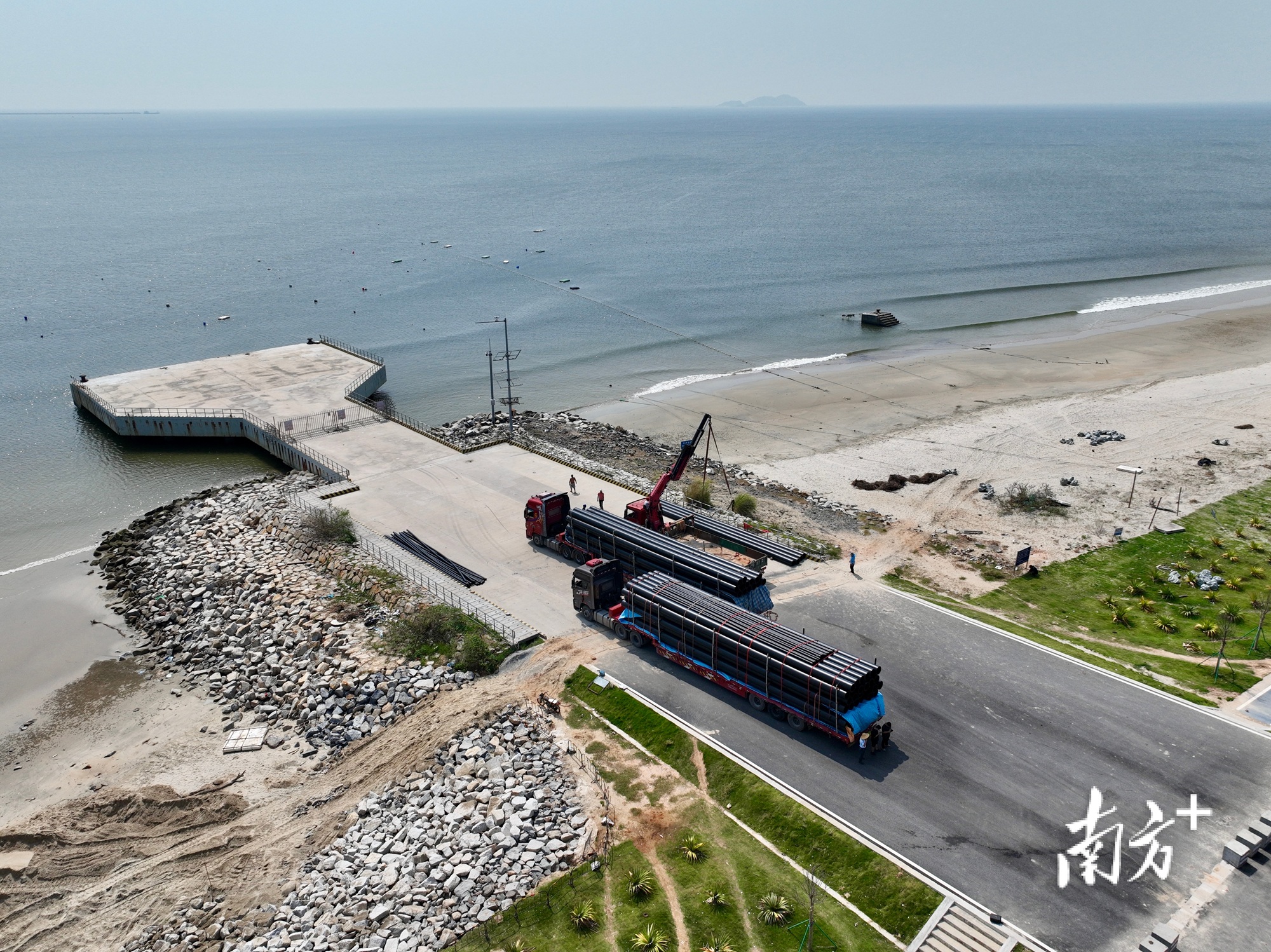 一批網(wǎng)箱即將下海安裝。