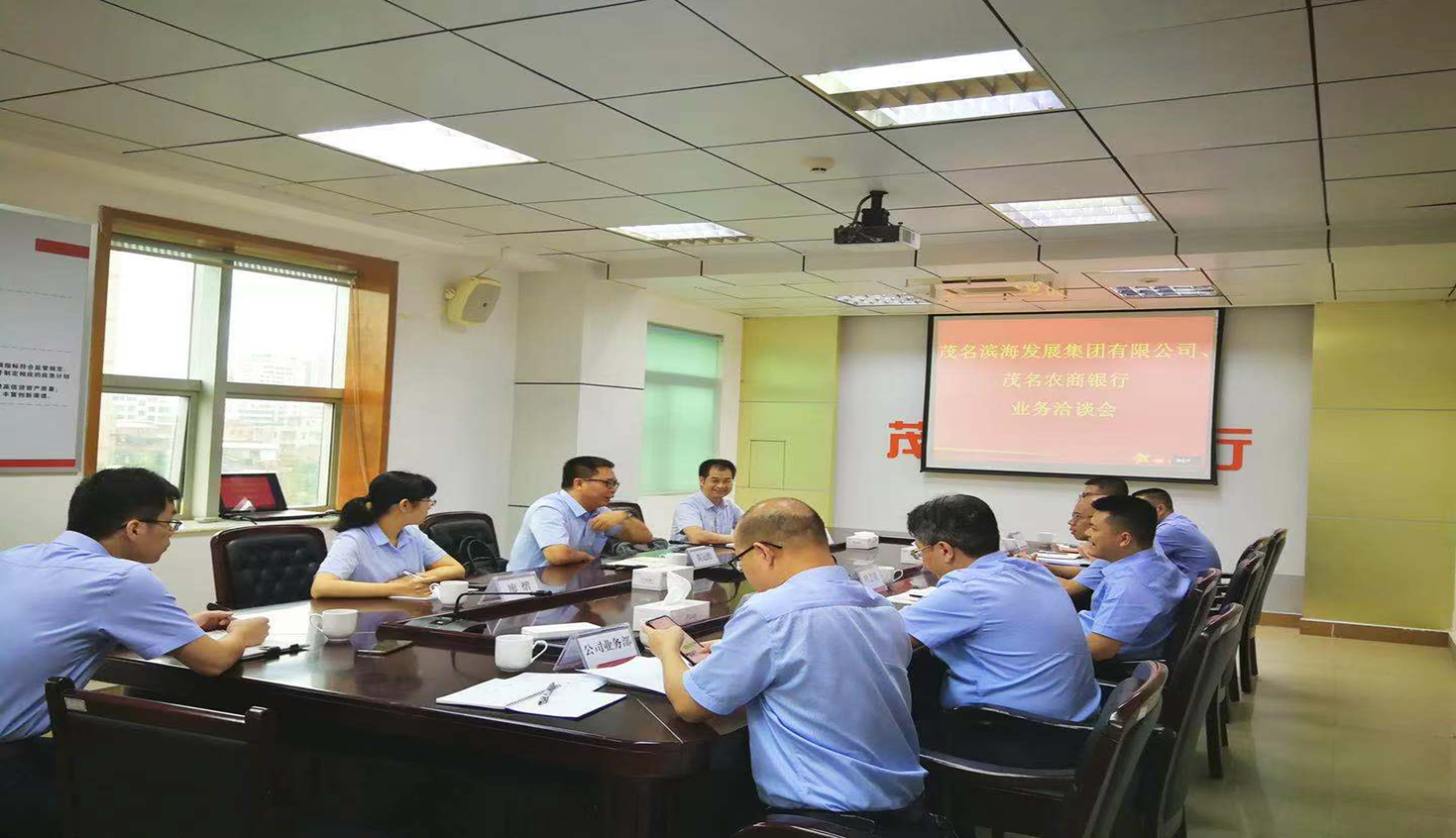 7月19日上午,茂名濱海發展集團黨委書記、董事長黃遠維帶隊拜訪茂名農商銀行,雙方就項目融資、產業合作等有關事宜進行洽談,并達成合作意向。茂名農商銀行行長葉志斌,副行長鐘劍釗、朱海龍;茂名濱海發展集團黨...